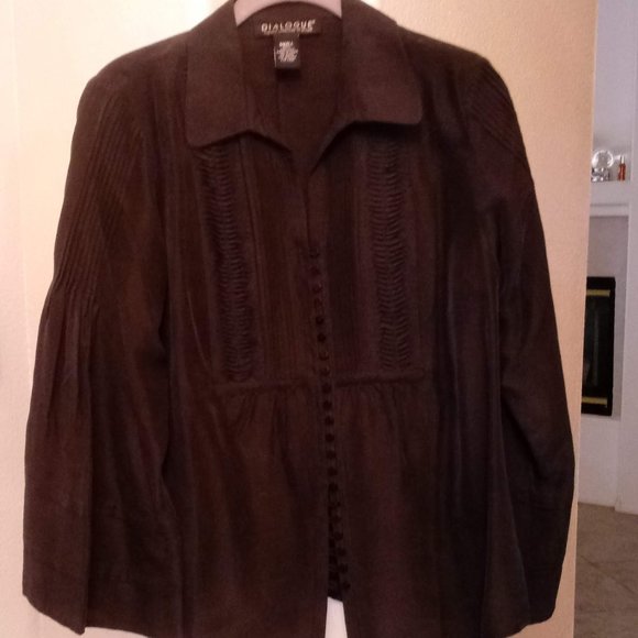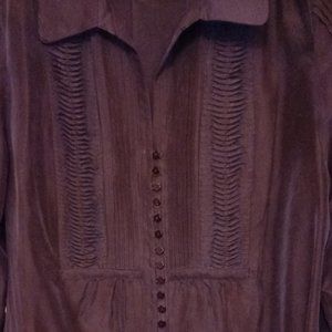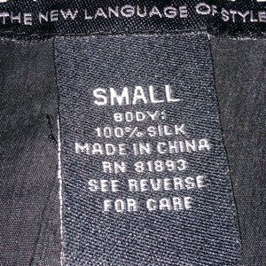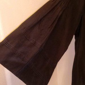 Dialogue Women's Size Small 100% Silk Black Long Wide Sleeve Blouse, pre-owned by me. From top of the bell sleeve to the bottom is approximately 22"; from top of the collar to the hem measures approximately 35"; arm hole to arm hole measures approximately 18".