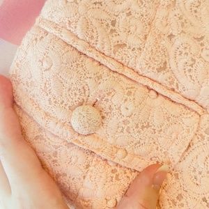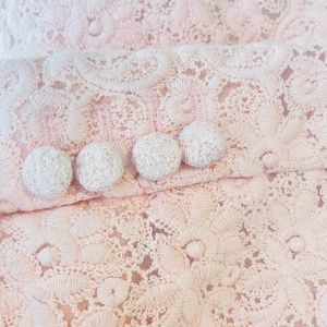 An authentic Dialogue work blazer in pink with pretty floral print embroidery, two buttons