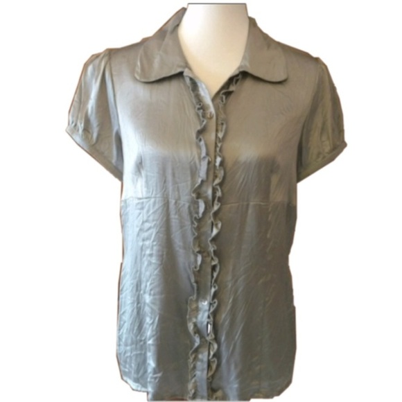 Metallic Silver Collared Silk Blouse is perfect for a work, a night out or even with a skirt for Sunday services. Please excuse the wrinkles.