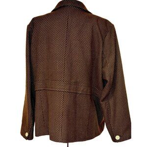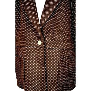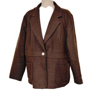 Dialogue Mini Dot Jacket Blazer Sz 2X Brown & White Lined Single Button Pockets