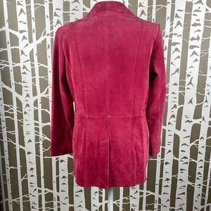 Condition: Gently worn with some loosening of buttons (all are still attached), softening of the suede in the elbow areas, light marks/scuffs on the suede from storage/wear, light dirt/discoloration marks on edges of collar/inside of collar/shoulders/cuffs, small snags on inside lining. See pics.