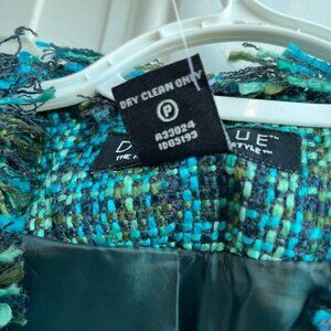Dialogue Tweed Jacket 2 Pockets Front Closure Long Sleeve Fringe-Edged Teal W 10