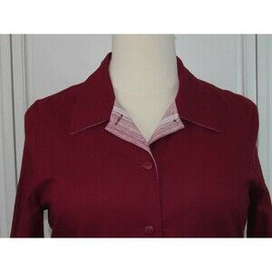 Dialogue Womens 16 Red Long Sleeve Jacket Button Down Linen Blend Shirt Lined XL