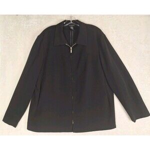 Dialogue Women's Full Zip Jacket Plus Size 20W Solid Black Stretch Blazer Career