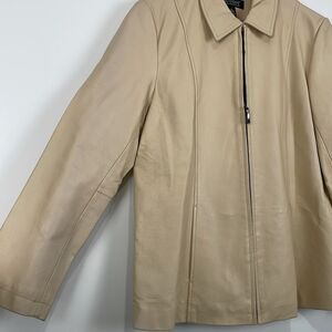 Dialogue Women’s Small Cream 100% Leather Jacket Full Zip Front Lined