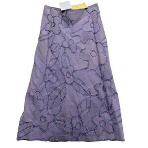 Dialogue Womens Suede Floral Stitched Midi Skirt Size 14 NWT Vintage Purple READ