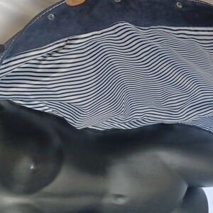 Dialogue genuine suede fully lined knee length jacket in blue w/white stitching
