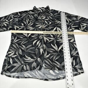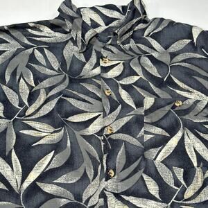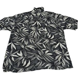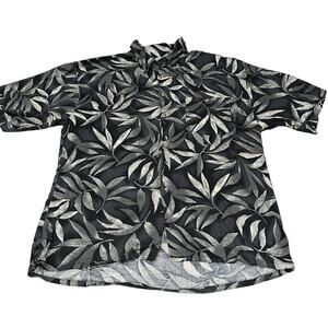 Diamante Hawaiian Shirt Size L Gray Leaf Pattern Button Up All Over Print