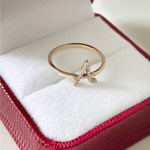 Diamond A Initial Ring 14k Yellow Gold