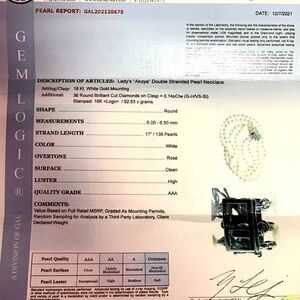 Fine Quality Akoya Pearl Diamond Double Strand Necklace 17" 18k Gold 6.5mm Certified $8,750 120675