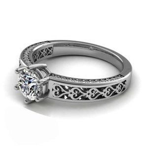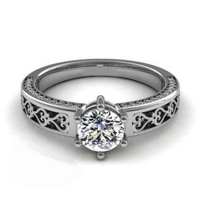 "Diamond Anillo Flower Carved CZ Filled Silver Vintage Ring for Women, VIP582