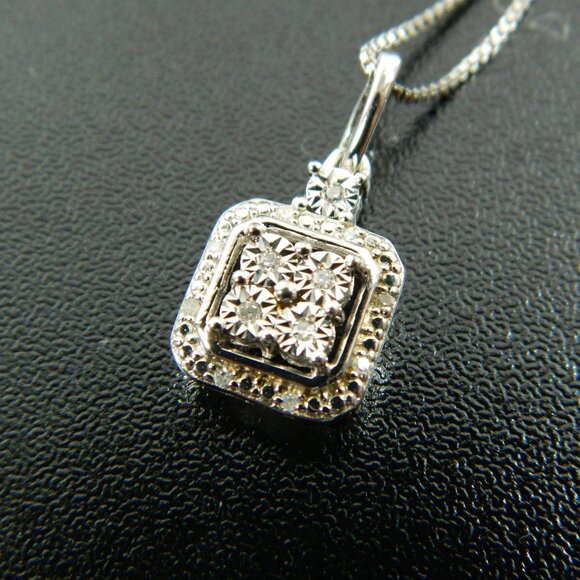 Diamond Blossom Necklace Diamonds set in Sterling Silver appx 1/20ctw