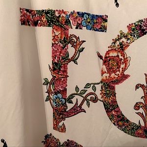 Beautiful white blinged out shirt with cute crystals throughout the intricate designed flowers