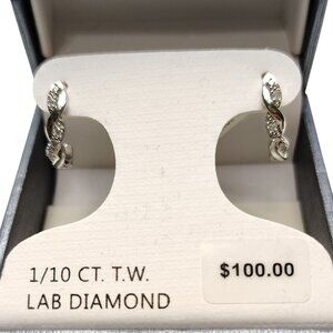 These sterling silver hoop earrings are adorned with 1/10 carat total weight lab-created diamonds, offering a refined elegance. The intricate design and shimmering diamonds make these earrings a subtle statement piece. Presented in an elegant gift box, they are a thoughtful and stylish gift choice for someone special.