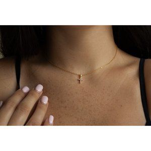 Diamond CZ Cross Necklace, Tiny Cross Necklace, Mini Cross Necklace