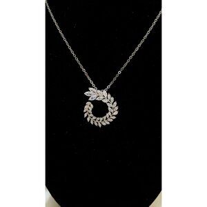 Diamond CZ Wreath Necklace, Dainty Cubic Zirconia Olive Branch Necklace