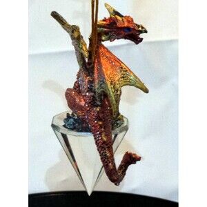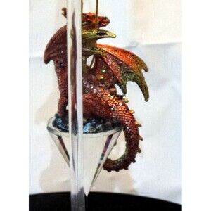 Diamond Dragon 2019 Gothic Holiday Ornament Item#QS94881 Annual Collectible Design Toscano Christmas Tree Ornament Celebrating 25 years of exclusive designs for Design Toscano, artist Liam Manchester decided that his diamond anniversary called for a Diamond Dragon so our 2019 limited-edition holiday dragon ornament arrives on his own larger-than-life, crystal glass diamond! Expertly hand painted in Medieval metallic tones, the Gothic dragon demon shines in festive colors, featuring a golden string at the top for easy hanging. Available only from Design Toscano, this unique gargoyle collectible makes a standout Christmas tree decoration, an exotic stocking stuffer, a charming package tie-on or a creative addition to your year-round dragon collection. 2"Wx2"Dx3½"H. We aren't Dragon our feet when it comes to your order! pictures may not accurately represent size and/or color due to monitor differences display pieces not included in auction Please l