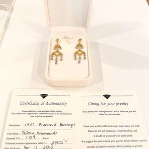 Beautiful 14 ct yellow Diamond and 1.09 ct Diamond Chandelier Earrings. Absolutely Stunning.
