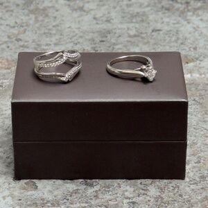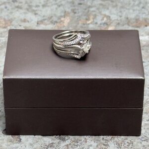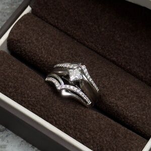 Diamond Engagement Ring & Wedding Band Princess Cut Unique Size 6 White Gold