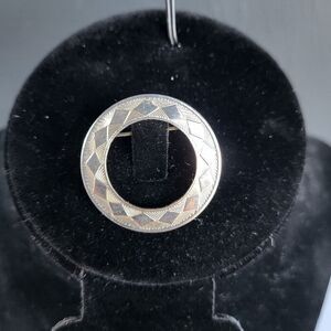 Diamond Etched Silvertone Circular Pin 1.3 in