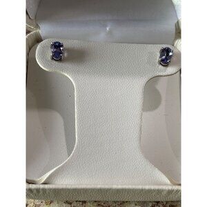 Diamond Fascination 14k White Gold Round Tanzanite Basket Set Earrings NIB