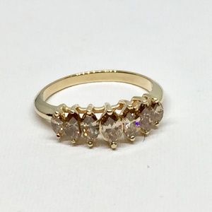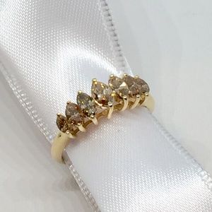 Fabulous 14k yellow gold champagne diamond fashion ring. This ring features seven graduated in size marquise shape, light champagne diamonds. Approximately .75cttw Ring size is a 7. Pre-owned in excellent like new condition.