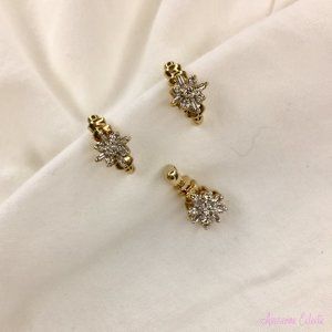 Diamond flower/starburst earrings & pendant in 10k yellow gold. Purchased around 2005. I don't remember the carat weight but the stones are excellent and clear.