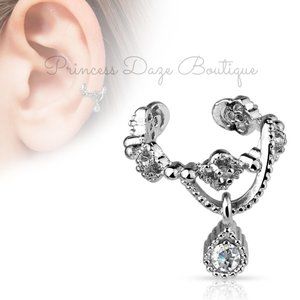 Diamond Gem Clip On Ear Cuff / Fake Cartilage Non Piercing Earring
