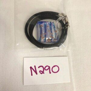 Dark Blue Gold & Silver Striped Diamond Glass Pendant Necklace