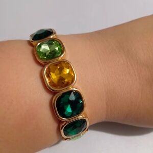 This stunning bracelet features vibrant green gemstones set in a luxurious gold band. Perfect for adding a touch of elegance to any outfit.