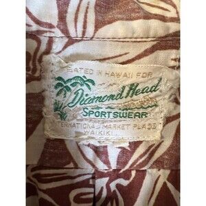 Diamond Head Sportswear Vintage Rust Brick Hawaiian Tropical Short Sleeve 1/4 Button Men's Size Large