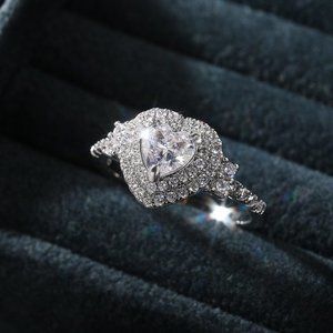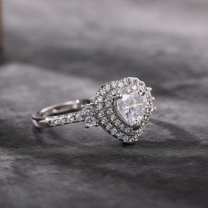 🌸Diamond Heart CZ Shiny 14k White Gold Luxury Macro Pave Ring for Women, K852