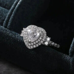 😍Diamond Heart CZ Shiny 14k White Gold Luxury Macro Pave Ring for Women, K852