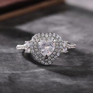 🌸Diamond Heart CZ Shiny 14k White Gold Luxury Macro Pave Ring for Women, K852