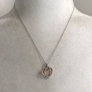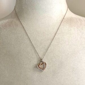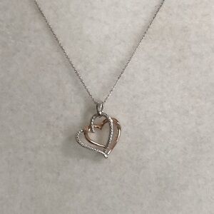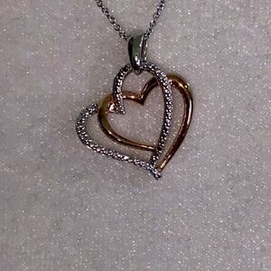 Two hearts! Rose gold heart with sterling silver diamond accented heart in the front