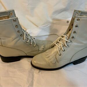 Diamond J Kiltie cream Justin Lace up Leather Rodeo Western Size 5.5 B
