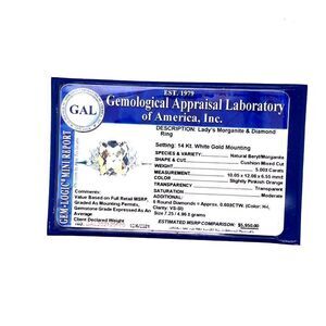 This Morganite ring has been Certified, Inspected, and Appraised by Gemological Appraisal Laboratory