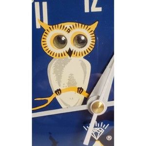 Diamond Owl Animated Wind-Up Alarm Clock Vintage UV Reactive. Made in Shanghai, China. Features animated owls eyes that move, adding a playful touch to its vintage/retro style. The numbers and clock dial tips are UV Reactive. The alarm clock is a wind-up and the Owl eyes move when clock is running. The eyes go from right to left. Dimensions: 5'' H.