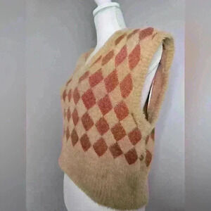 Diamond Patterned Knit Vneck Sweater Vest Size Small
