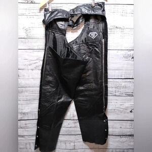 Diamond Plate Buffalo Leather Chaps Black size XL Motorcycle Biker Harley Moto