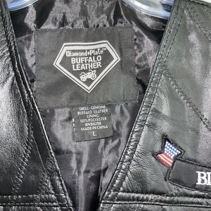 Diamond Plate Buffalo Leather Retro Black Biker Patch Motorcycle Vest Mens Sz L.