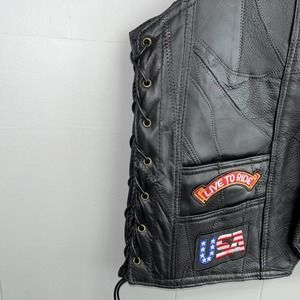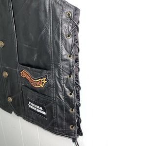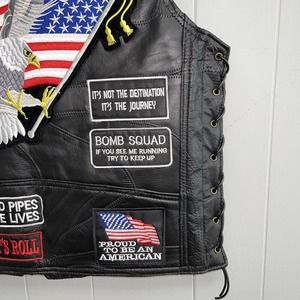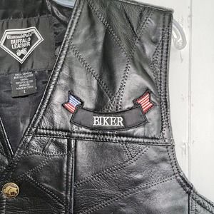 Diamond Plate Buffalo Leather Retro Black Biker Patch Motorcycle Vest Mens Sz L