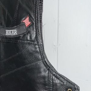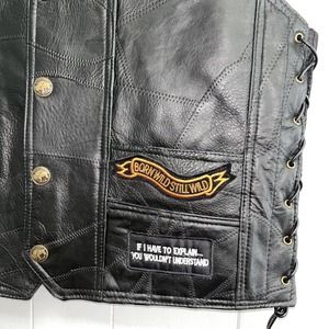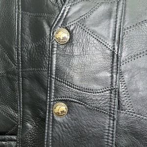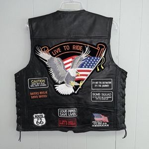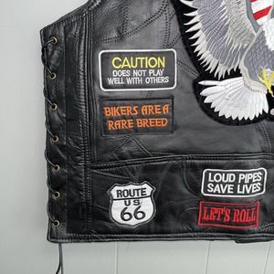 Buffalo Leather Men's Black Retro Style Patchwork Leather Biker Vest Jacket Sz L