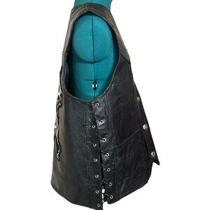 Other features: Diamond Plate, Genuine Buffalo Leather, Black, Vest, w/Skull Men's Size XL