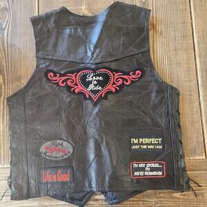 Diamond Plate Leather Vest Womens Small Black Motorcycle Biker Lace Up Patches