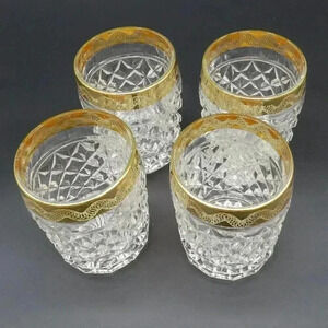 Diamond Point Clear Glasse with Wide Gold Band Old Fashioned Glass Whiskey Glass