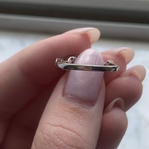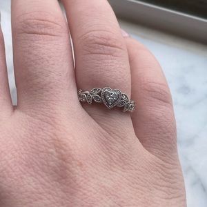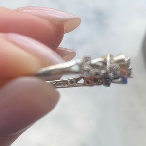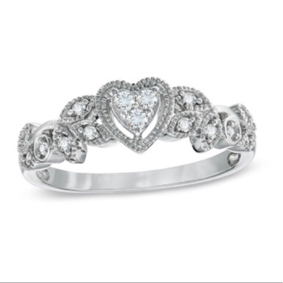 Worn for about a week, been in the box ever since. I absolutely LOVE this ring. It has such beautiful detailing. Will ship in box. From the Cherished Promise Collection. 10k White Gold and 1/8 CT TW diamonds. There is also a Sapphire in the inside of the band that I tried to show.