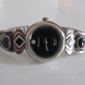 Diamond Quartz JB Navajo Sterling silver watch Womens Black Onyx Watch Bracelet