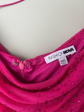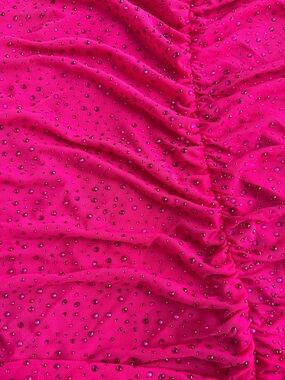 Stunning pink/fuchsia rhinestone ruched dress with spaghetti straps. Perfect for a night out.