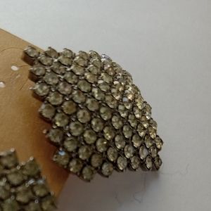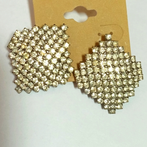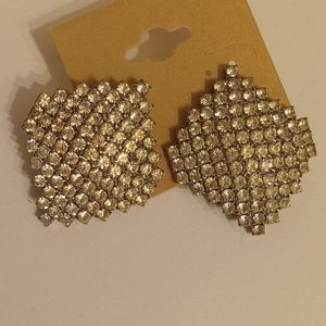 Diamond Rhinestones Earrings , Pierce ,Nip-Tips, Prong Setting, Silver Metal